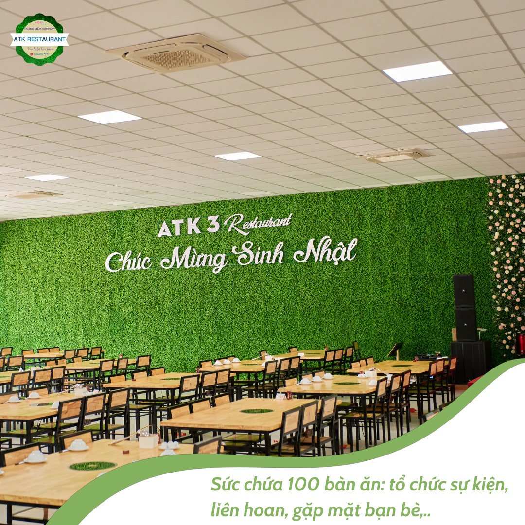Nhà hàng ATK3 tọa lạc tại khu đô thị số 5 Phường Thịnh Đán, thành phố Thái Nguyên, với sức chứa lên đến 200 bàn phục vụ ăn cùng lúc hơn 1000 người. Nơi đây, gần với Không gian Văn hóa Trà và vùng chè Tân Cương, phim trường Wonderland, Khu du lịch Hồ Núi Cốc. Với khẩu hiệu "Cơm không rau như đau không thuốc", nhà hàng ATK3 với hơn 60 loại rau, mầm, sạch và an toàn luôn là nơi lý tưởng hứa hẹn bữa ăn tuyệt vời cho du khách.