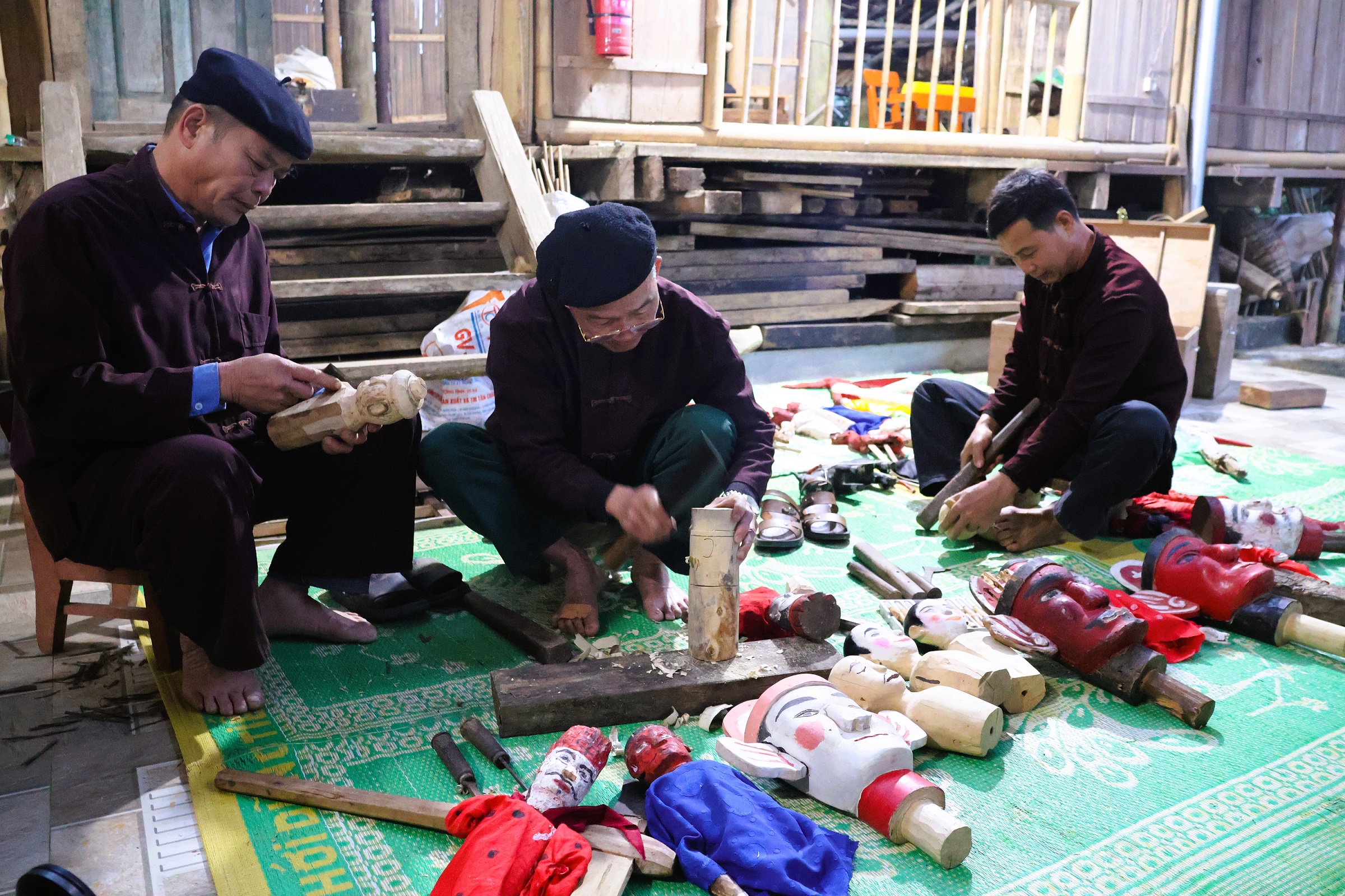 Đoàn tham quan phường rối Thẩm Rộc, xã Bình Yên, huyện Định Hóa.
