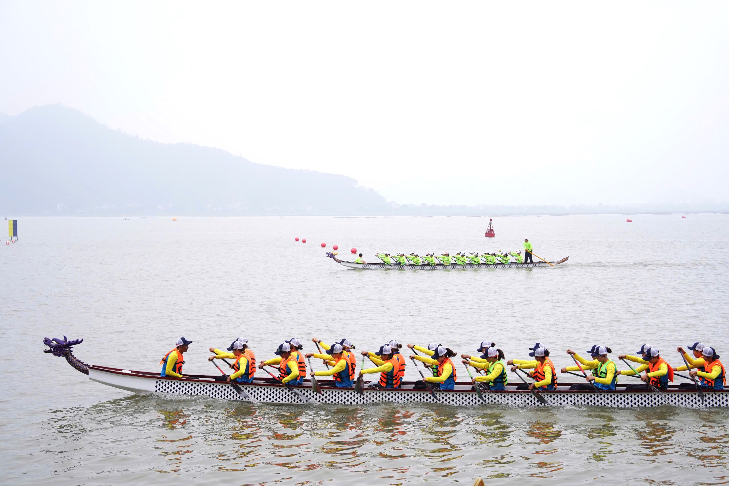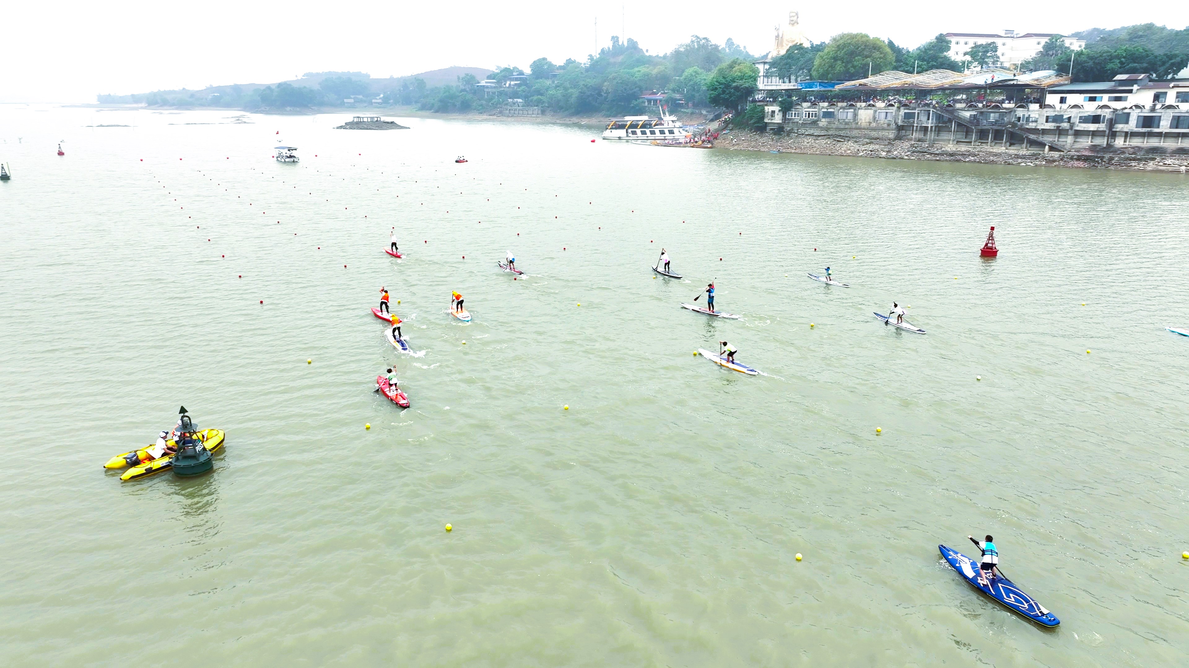 Giải đua thuyền được tổ chức với 2 nội dung: Thuyền truyền thống và ván chèo đứng.
