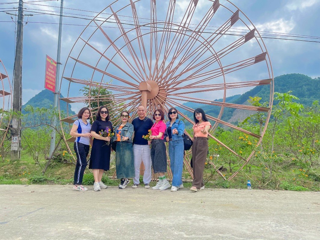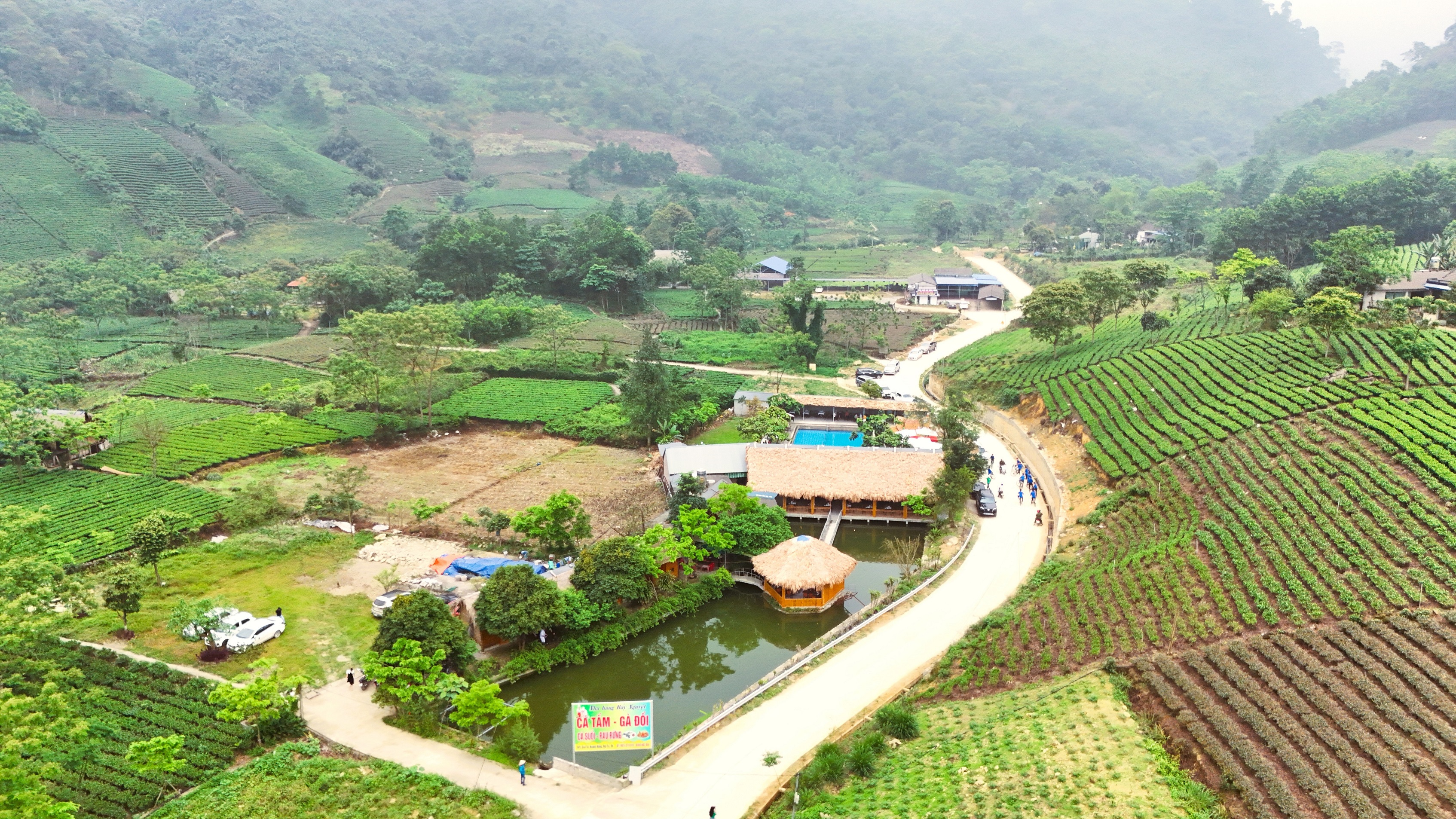 Du khách check in tại Điểm du lịch cộng đồng xóm Mỏ Gà.