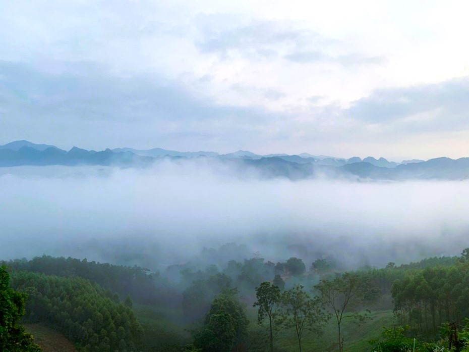 Chúng tôi đã có một buổi trải nghiệm khá ấn tượng khi được đại diện của cơ sở dẫn đến vị trí trải nghiệm săn mây. Khu vực này có địa hình khá cao, mây lờ mờ bao phủ. Từ đây có thể chiêm ngưỡng những dãy núi trùng điệp, toàn bộ khung cảnh bản làng, đô thị trong tầm mắt. Những bông lau mọc tự nhiên phủ dày kín triền núi như tô điểm cho bức tranh nơi đây thêm phần tươi đẹp. Dự kiến thời gian tới, cơ sở sẽ dựng một số chòi để du khách tận hưởng sự kỳ diệu, hấp dẫn của thiên nhiên.