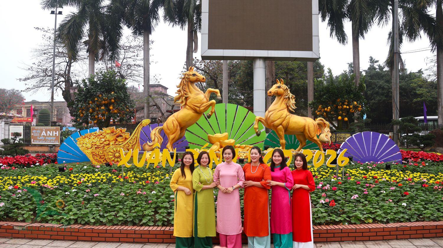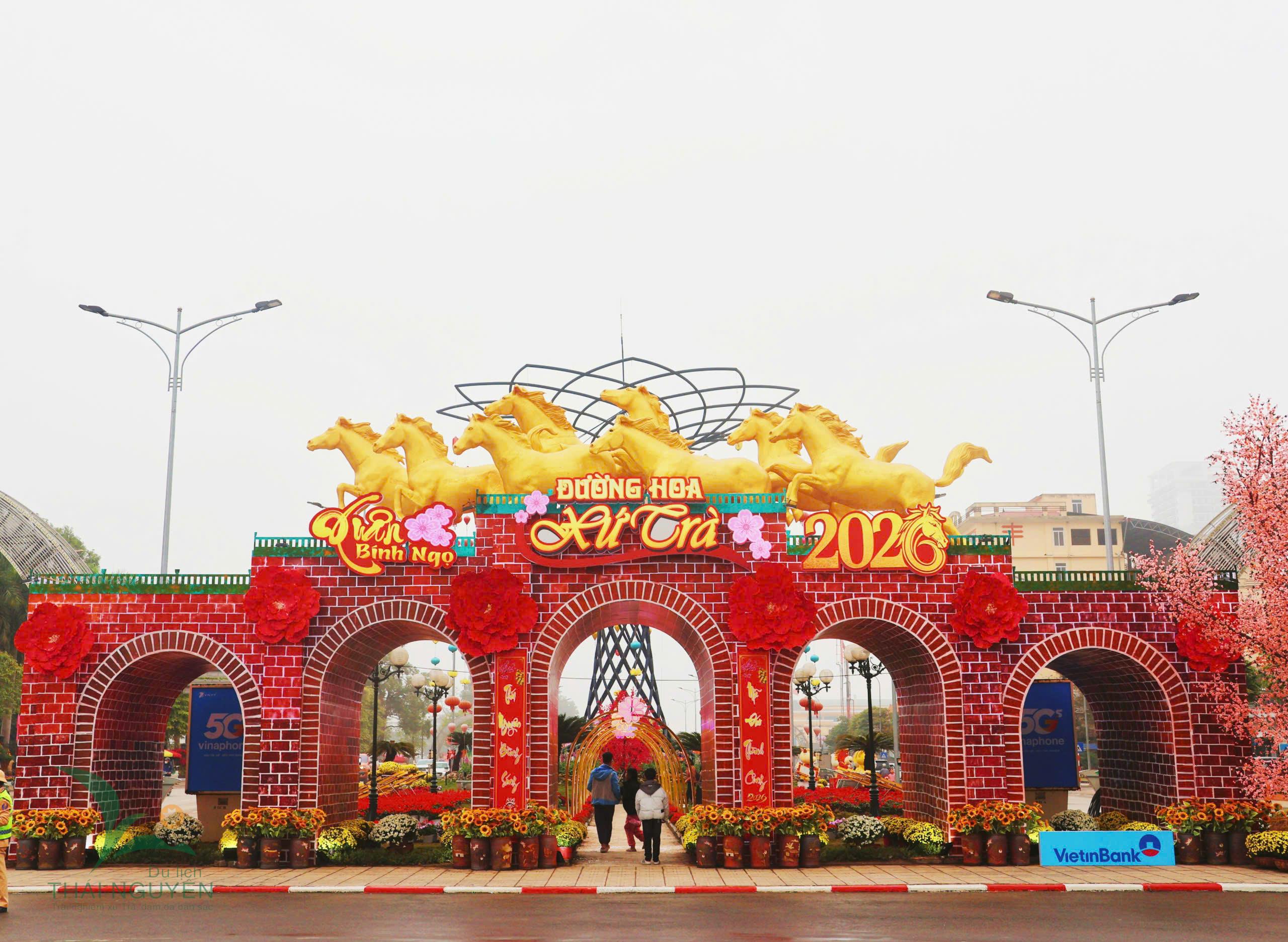 Trong không gian chung ấy, Quảng trường Võ Nguyên Giáp trở thành điểm đến thu hút đông đảo nhân dân và du khách đến tham quan, chụp ảnh, lưu giữ khoảnh khắc nhân dịp tết đến, xuân về. Điểm nhấn tại không gian này chính là tuyến đường hoa với chủ đề “Mã đáo thành công - Thái Nguyên bừng sáng”. Không gian được thiết kế rực rỡ, ấn tượng với nhiều tiểu cảnh công phu, đặc sắc, tái hiện hình ảnh linh vật ngựa vàng đầy khí thế, tượng trưng cho khát vọng vươn lên và những bước tiến mạnh mẽ trong năm mới.