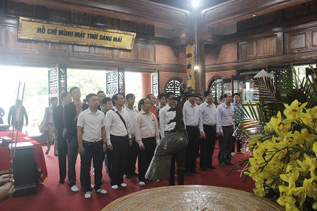 Du khách dâng hương tại Nhà tưởng niệm Chủ tịch Hồ Chí Minh tại ATK Định Hóa. Ảnh: Nam Đan