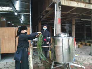Dân bản đun nước xông theo phương pháp dân gian để nâng cao sức khỏe.