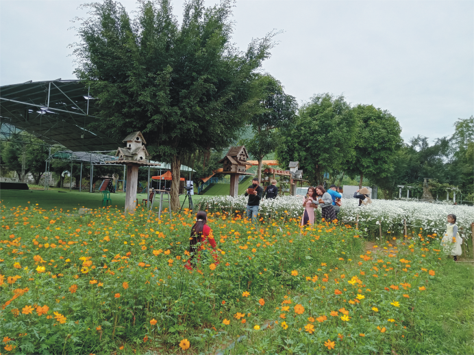 Du khách check in trên những vườn hoa. Ảnh: Ngọc Linh