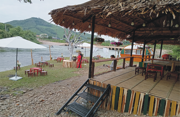 Bối cảnh khá tuyệt vời bên dòng sông Công. Ảnh: Minh Đỗ