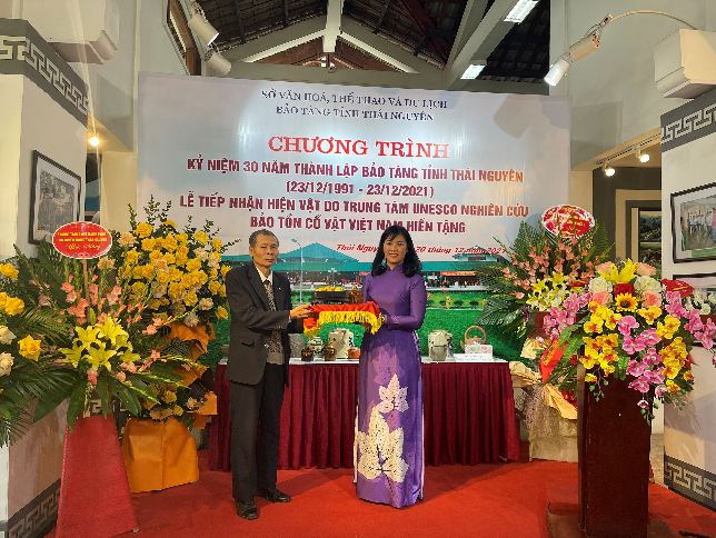 Ngày 20/12/2021, Bảo tàng tỉnh Thái Nguyên tổ chức Chương trình kỷ niệm 30 năm ngày thành lập (23/12/1991 - 23/12/2021) và Lễ tiếp nhận hiện vật do Trung tâm Unesco Nghiên cứu sưu tầm cổ vật Việt Nam hiến tặng. Tới dự buổi lễ có đồng chí Nguyễn Thị Mai, Ủy viên Ban Chấp hành Đảng bộ tỉnh, Giám đốc Sở Văn hóa, Thể thao và Du lịch; đồng chí Lê Thị Thu Hà - Phó Giám đốc Sở; đại diện lãnh đạo Trung tâm Unesco Nghiên cứu sưu tầm cổ vật Việt Nam, Hội Di sản Văn hóa Việt Nam, các đơn vị trực thuộc Sở, đại diện chính quyền địa phương xã Tân Cương và các phóng viên báo chí truyền hình của tỉnh…