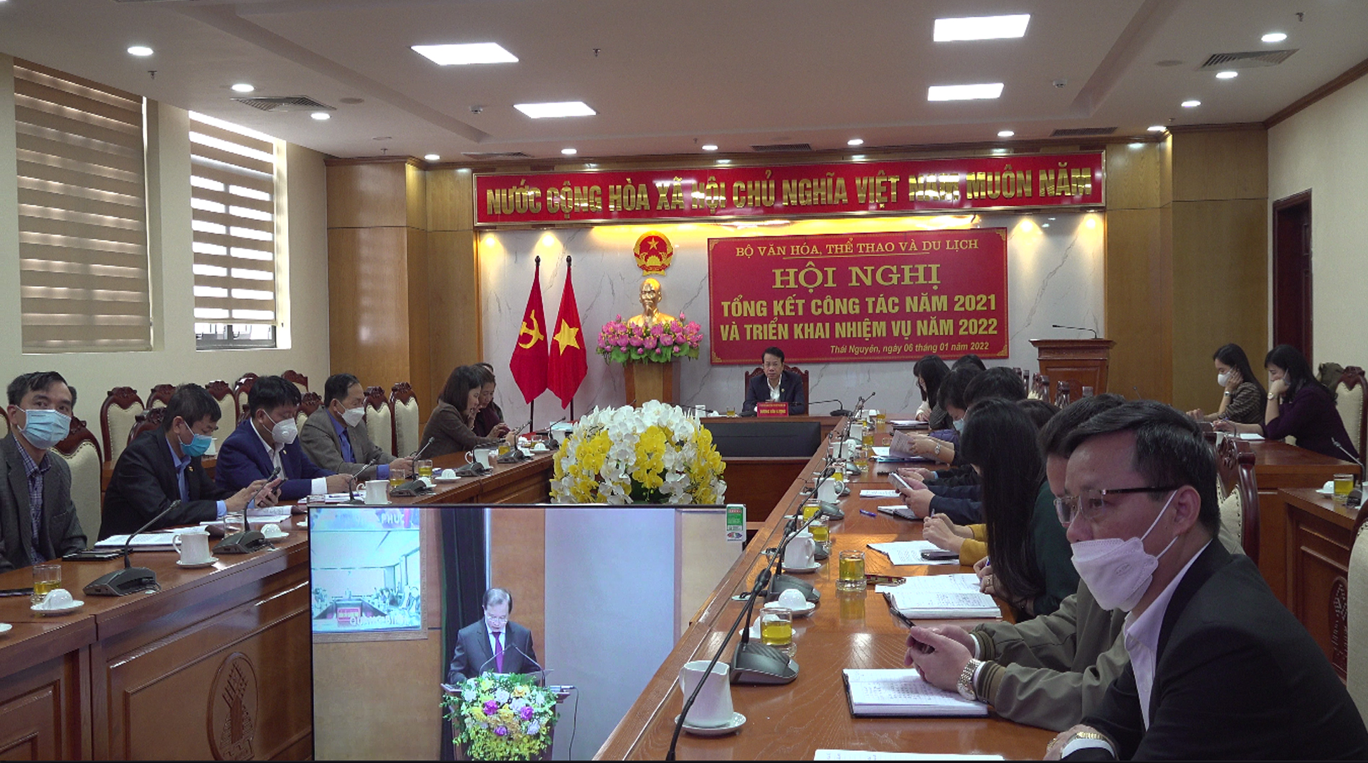Sáng 06/01, tại Hà Nội, Bộ Văn hóa, Thể thao và Du lịch đã tổ chức Hội nghị trực tuyến tổng kết công tác năm 2021 và triển khai nhiệm vụ năm 2022 với 63 điểm cầu tại các tỉnh, thành phố trên cả nước. Đồng chí Nguyễn Văn Hùng, Ủy viên Ban Chấp hành Trung ương Đảng, Bộ trưởng Bộ Văn hóa, Thể thao và Du lịch chủ trì Hội nghị.
