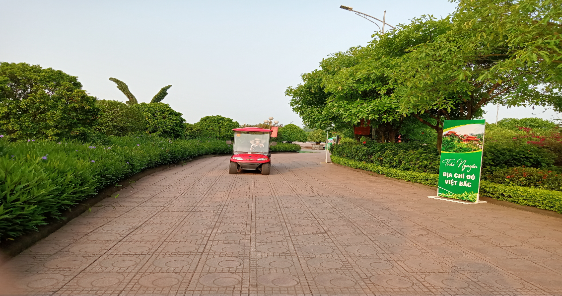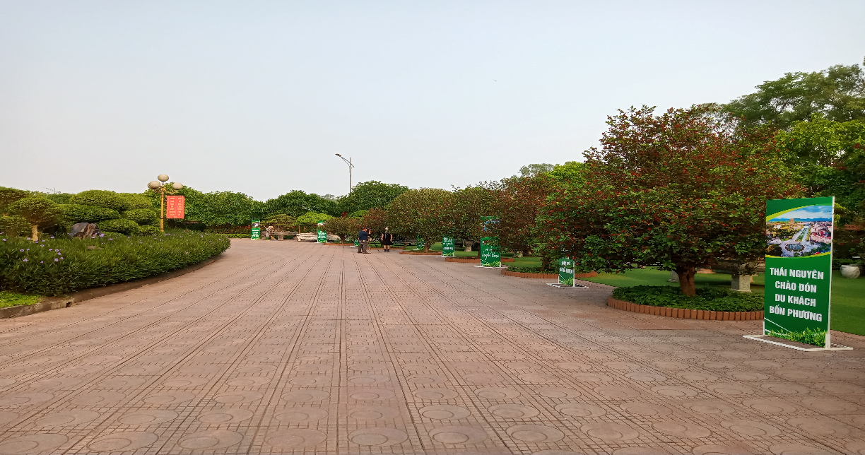 Khảo sát một vòng, chúng tôi thấy hệ thống băng zôn, phướn tuyên truyền về chương trình khai mạc Mùa Du lịch Thái Nguyên 2022 đã được bố trí từ cổng vào cùng các khẩu hiệu quảng bá về du lịch Thái Nguyên. Một không khí làm việc rất tích cực và khẩn trương của các nhân viên tại đây sẽ góp phần không nhỏ cho sự thành công của chương trình.