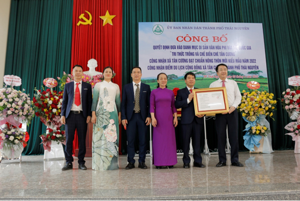 Không những dừng lại ở việc trồng và sản xuất chè mà người dân Tân Cương đã tích cực tham gia phát triển du lịch cộng đồng, phát triển kinh tế. Từ năm 2016, vùng chè đặc sản Tân Cương đã được công nhận là điểm du lịch địa phương với các di tích lịch sử văn hoá, các làng nghề chè truyền thống, Không gian văn hóa trà Tân Cương, lễ hội “Hương sắc trà xuân”. Nhiều mô hình du lịch cộng đồng đã thu hút du khách tới tham quan, trải nghiệm thu hái, chế biến chè, ăn uống và lưu trú như: Hợp tác xã chè Hảo Đạt, Hợp tác xã Tâm Trà Thái, Hợp tác xã chè Trung du Tân Cương, Hợp tác xã trà và du lịch cộng đồng Tiến Yên, cơ sở sản xuất chè và du lịch cộng đồng Phúc Kim, Nghìn Hạnh, Thắng Hường…