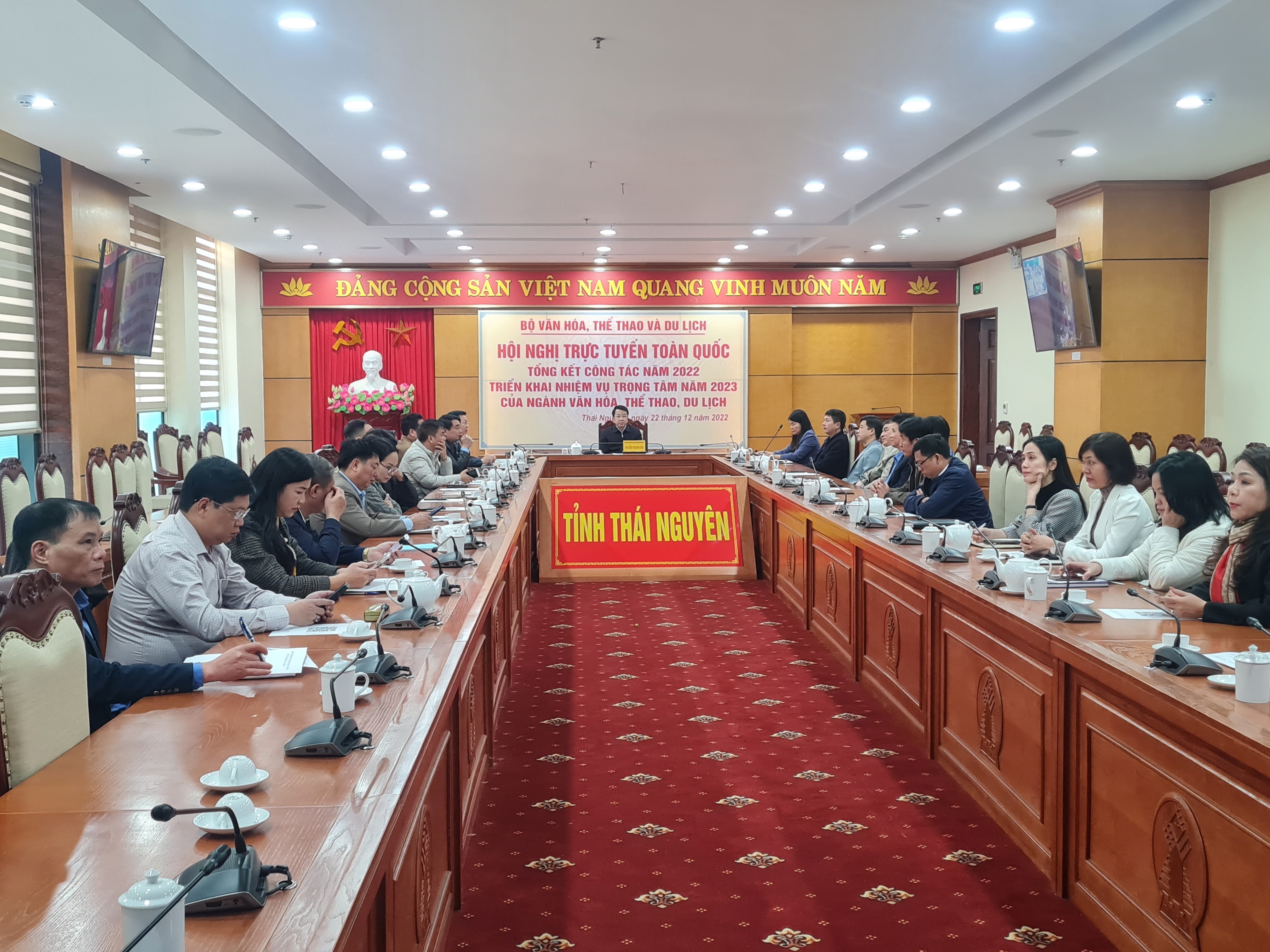 Sáng 22/12/2022, Bộ Văn hóa, Thể thao và Du lịch đã tổ chức Hội nghị trực tuyến tổng kết công tác năm 2022, triển khai nhiệm vụ năm 2023. Đồng chí Vũ Đức Đam, Ủy viên Ban Chấp hành Trung ương Đảng, Phó Thủ tướng Chính phủ và đồng chí Nguyễn Văn Hùng, Ủy viên Ban Chấp hành Trung ương Đảng, Bộ trưởng Bộ Văn hóa, Thể thao và Du lịch chủ trì hội nghị. Cùng dự hội nghị có lãnh đạo các Bộ, ban, ngành, đoàn thể Trung ương và 63 điểm cầu tại các tỉnh, thành trên cả nước.