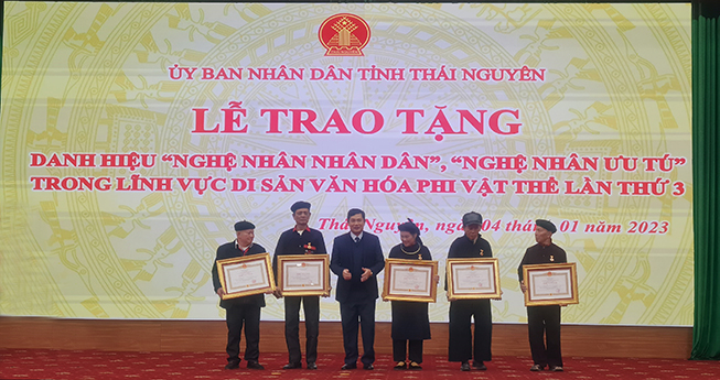 Chiều ngày 04/1/2023, UBND tỉnh Thái Nguyên đã long trọng tổ chức Lễ trao tặng danh hiệu Nghệ nhân Nhân dân, Nghệ nhân Ưu tú trong lĩnh vực di sản văn hóa phi vật thể lần thứ 3 và tuyên dương huấn luyện viên, vận động viên đạt thành tích xuất sắc tại Đại hội Thể thao toàn quốc lần thứ IX, năm 2022.
