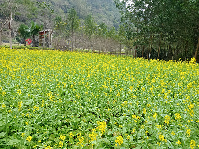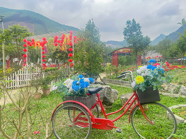 Đến với Thung lũng Tình Yêu, du khách sẽ được thỏa sức check in với đủ các loài hoa khoe sắc theo mùa. Tại thời điểm chúng tôi đến là vào tháng 2 âm lịch, theo như chủ cơ sở chia sẻ thì đây không phải là thời điểm nở rộ nhất của các loài hoa những chúng tôi vẫn thấy rất hấp dẫn bởi được ngắm nhìn vườn cải vàng ươm trải dài đung đưa khoe mình trong gió, vườn hồng rực rỡ, vườn hoa tam giác mạch do yếu tố thời tiết không còn rực rỡ như trước nhưng vẫn đủ sức cuốn hút du khách. Đặc biệt xen kẽ là sắc hoa mơ nở trắng cùng với hoa ban tím mà du khách chỉ cần dừng ở bất kỳ vị trí nào cũng có những bức hình đẹp mà mọi người ngỡ rằng mình đang đi du lịch ở đâu đó miền Tây Bắc.