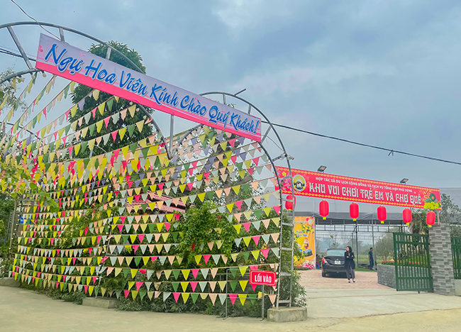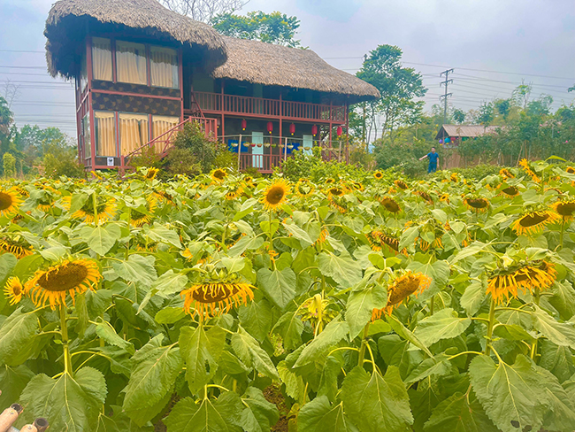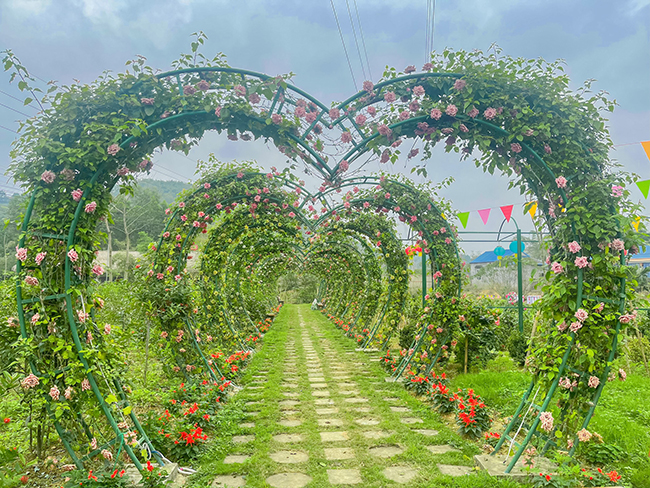 hoa như: Hoa hồng, hoa hướng dương, hoa thược dược, hoa nhài tây, hoa cải… Các giống hoa luôn được trồng gối nhau quanh năm đảm bảo đáp ứng nhu cầu checkin của du khách vào mọi thời điểm. Cùng với đó là nhiều mô hình độc đáo, phối cảnh, tiểu cảnh cũng được tạo dựng để tạo ấn tượng cho du khách như: Mô hình trái tim đôi, con đường trái tim, mê cung xanh… Ngoài việc tham quan, chụp ảnh tại vườn hoa, du khách có thể nghỉ ngơi, thư thái bên những chòi nghỉ chân mà cơ sở đã dựng sẵn. Đối với những du khách ở xa, cơ sở cũng có dịch vụ lưu trú với 8 phòng nghỉ phục vụ tối đa gần 20 khách. Được biết, hiện nay, cơ sở đang đầu tư xây dựng hai ngôi nhà sàn phục vụ ẩm thực và dự sẽ đi vào hoạt động khoảng giữa năm nay.