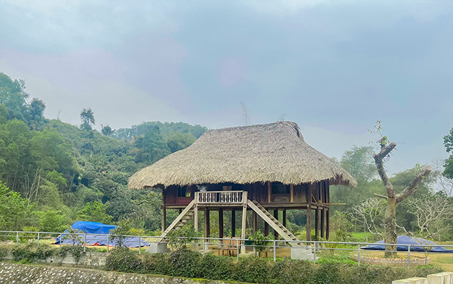 Khu nhà sàn phục vụ ẩm thực đang được hoàn thiện để phục vụ du khách.