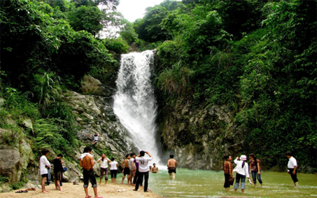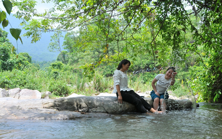 Du khách tham quan, trải nghiệm tại thác Khuôn Tát.