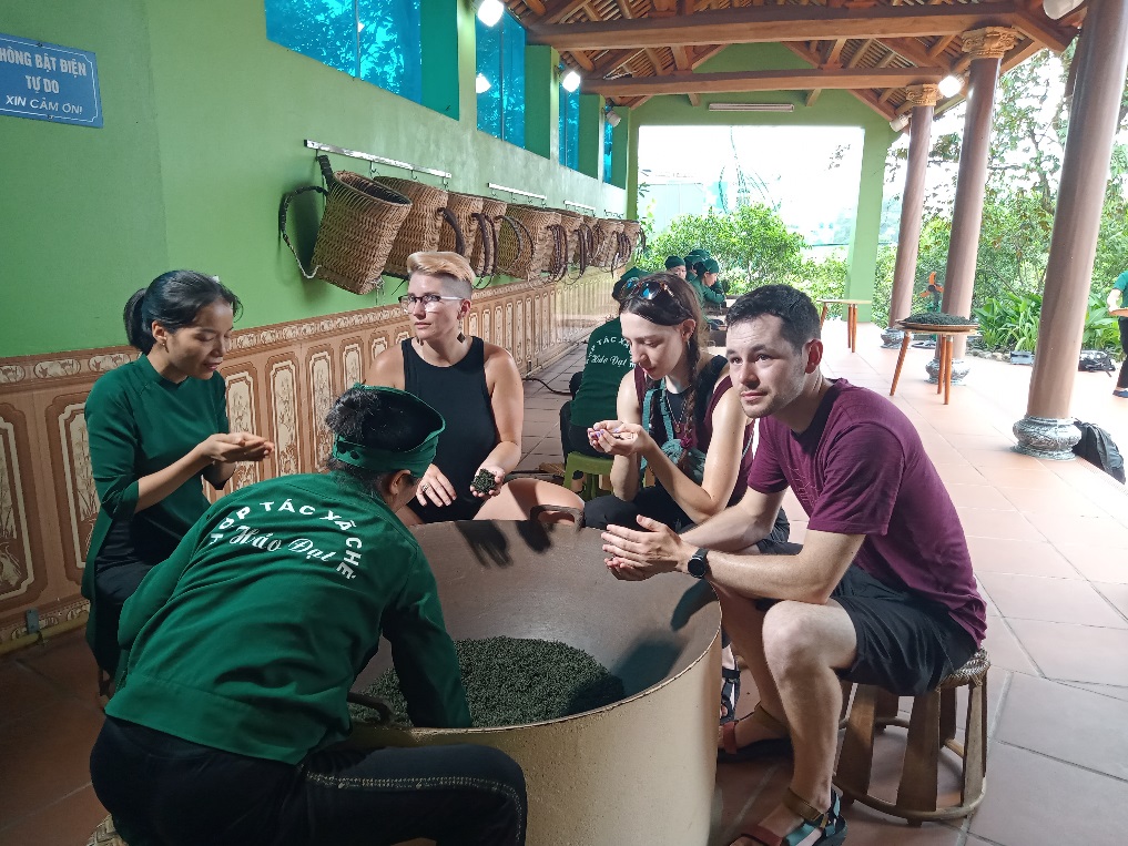 Có thể nói, làm du lịch rất cần có sự mới lạ thêm vào đó là một chút mạnh dạn của nhà đầu tư thì sẽ tạo ra những sản phẩm hấp dẫn du khách… Và hợp tác xã chè Hảo Đạt đã làm được điều mà không phải cơ sở chè nào của Thái Nguyên cũng làm được. Chính thức làm du lịch từ năm 2019, khi đó cơ sở mới xây dựng không gian văn hóa trà với căn nhà gỗ năm gian, được bố trí những bộ bàn ghế tràng kỷ, phong cách cổ xưa mang đến không gian truyền thống ấm áp cho du khách. Cùng với đó là không gian trải nghiệm sao chè truyền thống, những bộ trang phục dân tộc và một số đồ dùng vật dụng để du khách trải nghiệm cùng bà con… Đến nay, Hợp tác xã đã ngày một hoàn thiện và tạo được những dấu ấn với nhiều du khách trong nước và quốc tế.