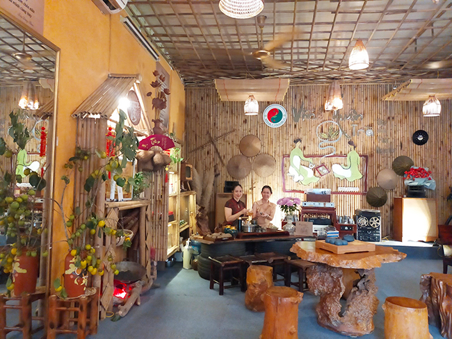 Những góc thưởng trà mang âm hưởng của làng quê Việt tại Vĩnh Xuân Trà.