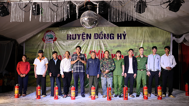 Công an huyện Đồng Hỷ trao tặng bình chữa cháy cho các hộ nghèo,