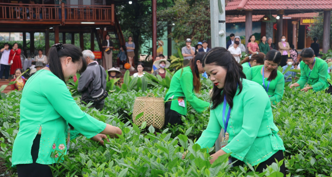 Thi hái chè nhanh. Ảnh: Hoàng Liên