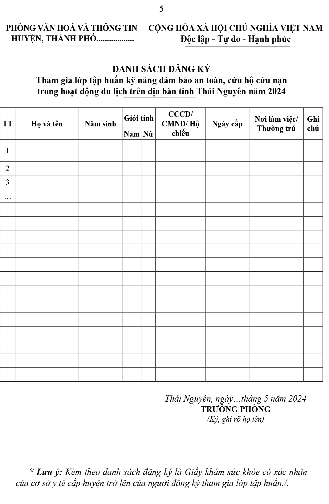 Điện thoại: 0208.3855506 - Fax: 0208.3855506 - Email: sovhttdl@thainguyen.gov.vn