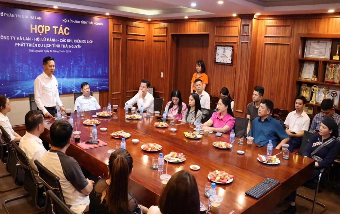 Tại Hội nghị, các đại biểu đã được nghe ông Nguyễn Mạnh Hà, Chủ tịch Hội đồng quản trị, Tổng Giám đốc Công ty cổ phần Thương mại và Du lịch Hà Lan đã giới thiệu về quá trình hình thành và phát triển của Công ty thông qua video clip và chia sẻ về các tuyến xe buýt mà Công ty mới đưa vào khai thác nhằm phục vụ nhu cầu của du khách đến với các điểm du lịch trên địa bàn tỉnh Thái Nguyên. Bên cạnh đó, Công ty cũng mong muốn trong thời gian tới sẽ phối hợp với các đơn vị lữ hành, các khu, điểm đến du lịch xây dựng các tuor du lịch kích cầu giới thiệu đến du khách, đồng thời để quảng bá, tuyên truyền tại các điểm đón khách của Công ty tại Hà Nội.