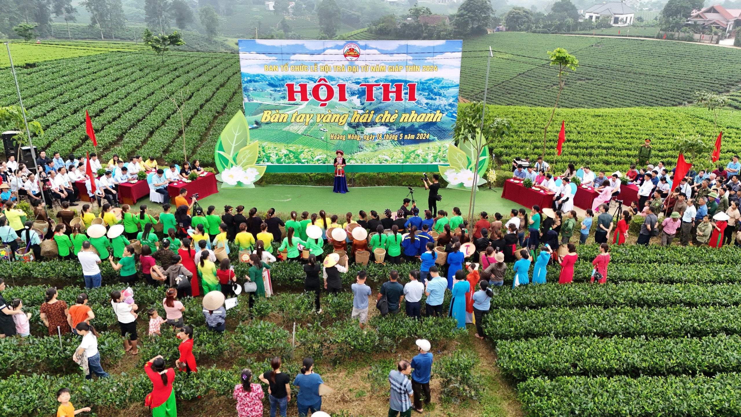 Hội thi Bàn tay vàng hái chè nhanh được tổ chức tại đồi chè Cầu Đá, xã Hoàng Nông.