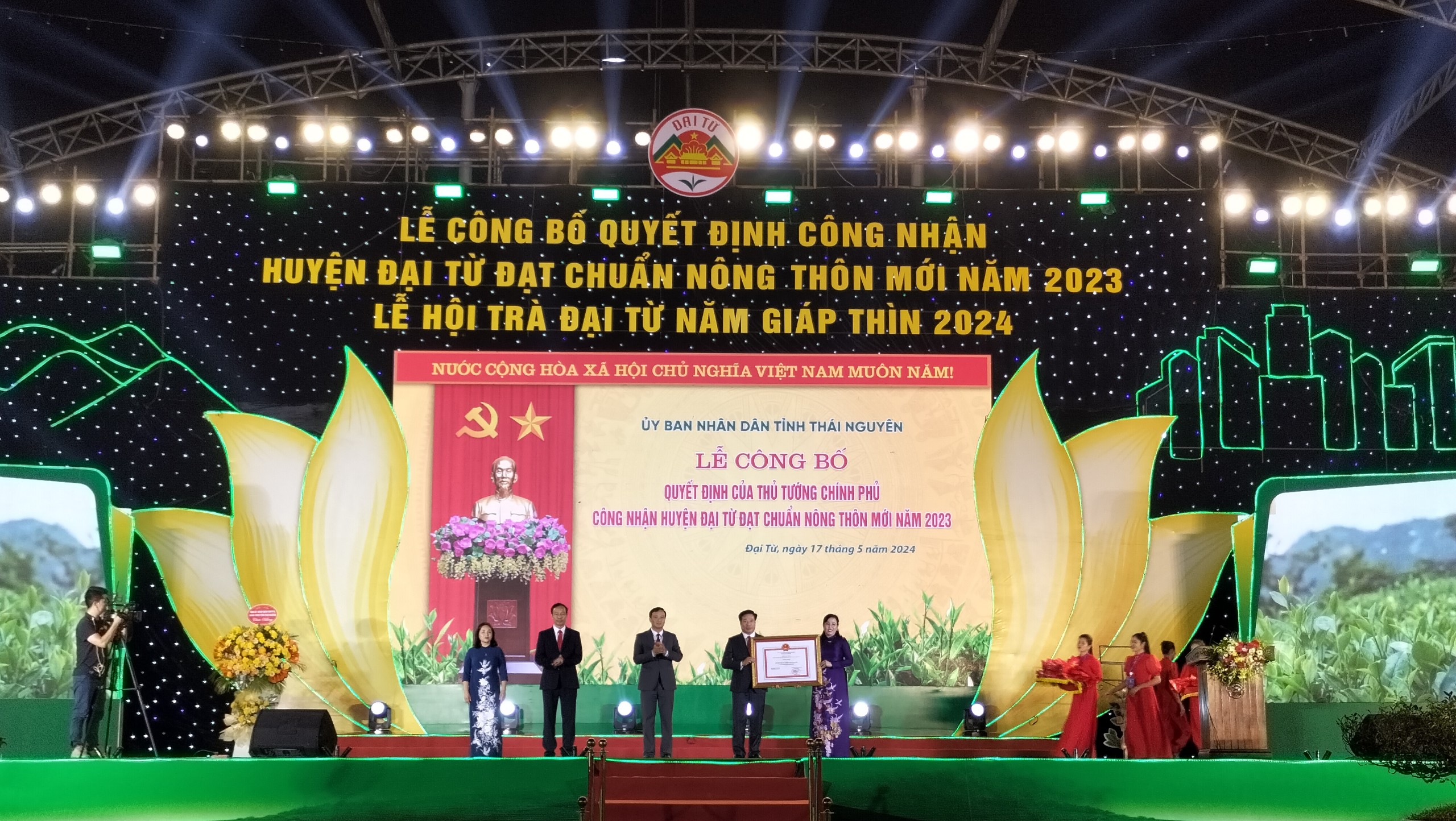 Tối 17/5, tại Quảng trường 27/7, thị trấn Hùng Sơn, huyện Đại Từ, Huyện uỷ, Hội đồng Nhân dân, Uỷ ban Nhân dân huyện Đại Từ đã long trọng tổ chức công bố Quyết định huyện Đại Từ đạt chuẩn Nông thôn mới năm 2023 và Lễ hội Trà Đại Từ năm Giáp Thìn 2024.