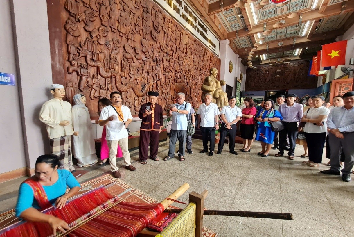 Các đại biểu tham quan và nghe giới thiệu về Di sản Văn hóa Chăm Ninh Thuận.