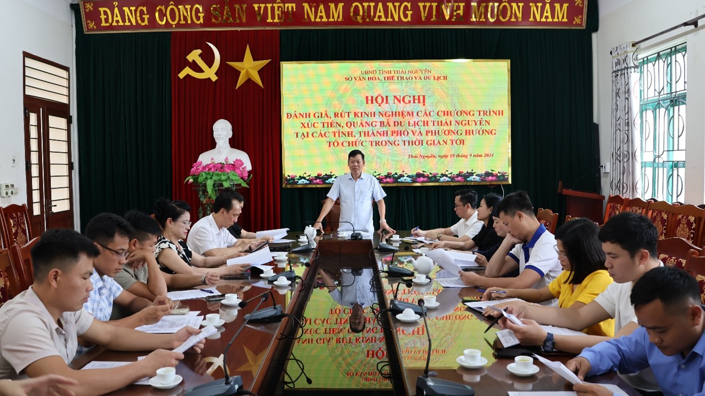 Chiều ngày 19/9/2024, Sở Văn hóa, Thể thao và Du lịch tỉnh Thái Nguyên đã tổ chức Hội nghị đánh giá, rút kinh nghiệm các chương trình xúc tiến, quảng bá du lịch Thái Nguyên tại các tỉnh, thành phố và triển khai nhiệm vụ trong thời gian tới.