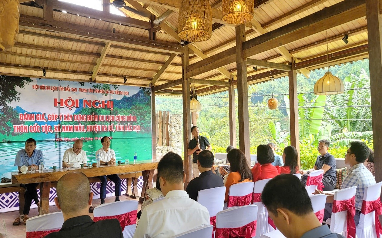 Cũng trong khuôn khổ chương trình, sáng ngày 20/10/2024, tại Điểm du lịch cộng đồng thôn Cốc Tộc, xã Nam Mẫu, huyện Ba Bể, tỉnh Bắc Kạn các đại biểu đã tham dự Hội nghị đánh giá, góp ý xây dựng điểm du lịch cộng đồng thôn Cốc Tộc, xã Nam Mẫu, huyện Ba Bể, tỉnh Bắc Kạn. Hội nghị đã nhận được nhiều ý kiến đóng góp của các chuyên gia, các nhà quản lý và đại biểu về các giải pháp để phát triển du lịch khu vực ven hồ Ba Bể như: Công tác quy hoạch; công tác xúc tiến, truyền thông; vấn đề giao thông nông thôn; vệ sinh môi trường và nâng cao chất lượng nguồn nhân lực...