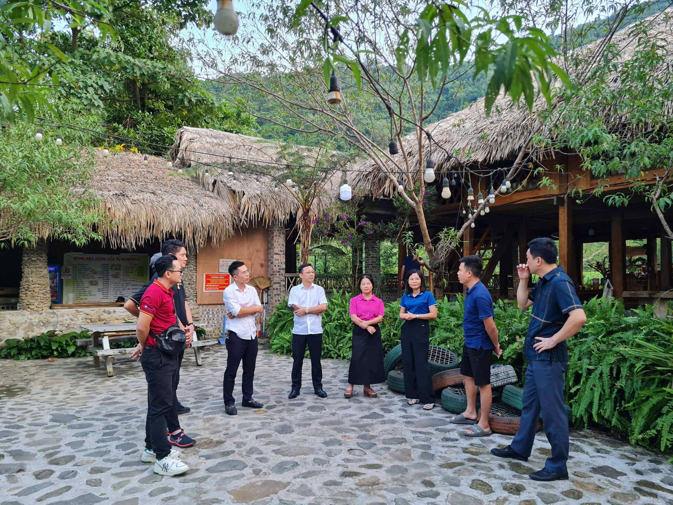 Đoàn khảo sát tại Điểm du lịch sinh thái xóm Đồng Khuân. Ảnh: Ngọc Linh