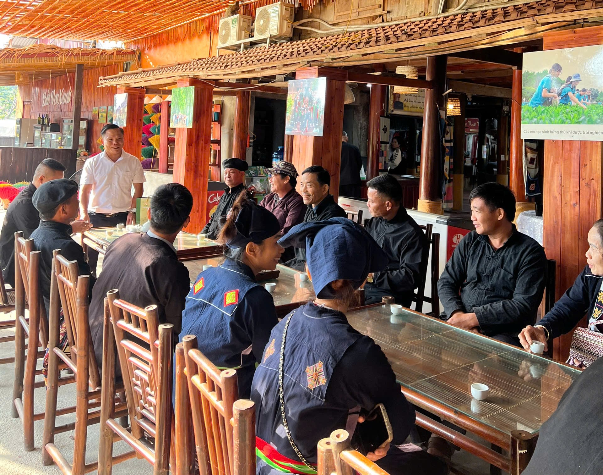 Đại diện Hợp tác xã du lịch cộng đồng Bản Ven trao đổi, chia sẻ với bà con về quá trình xây dựng và phát triển du lịch tại địa phương.
