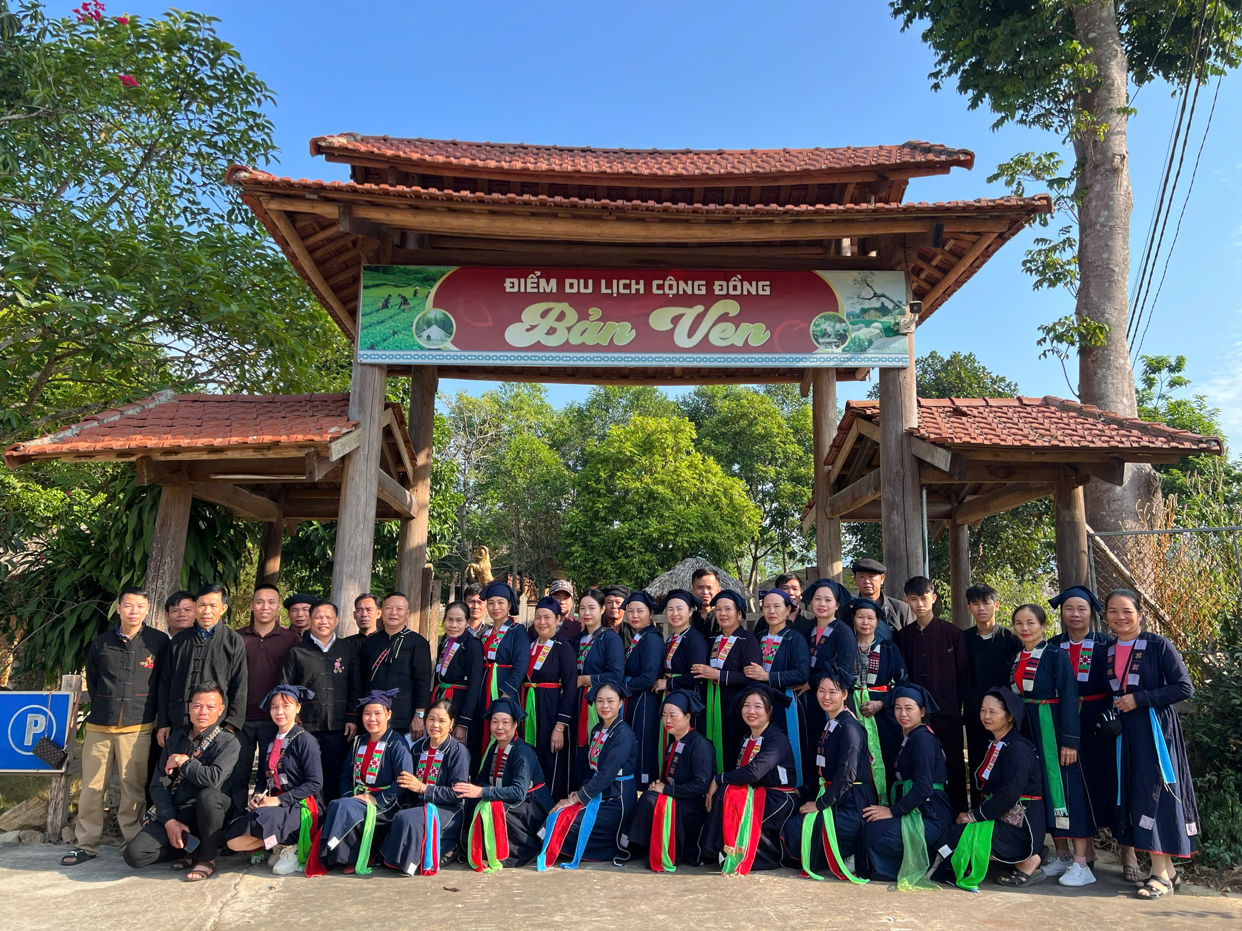Đoàn chụp ảnh lưu niệm tại Điểm du lịch cộng đồng Bản Ven.