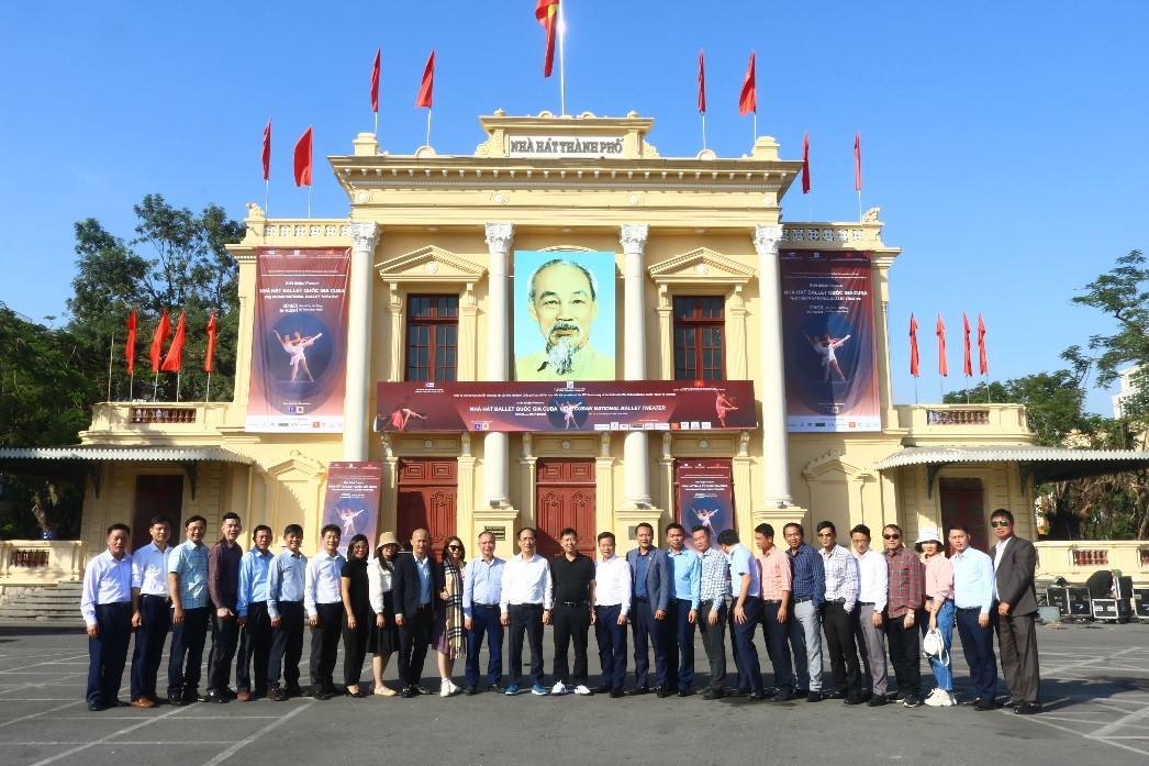 Đoàn chụp ảnh lưu niệm tại Nhà hát thành phố Hải Phòng.