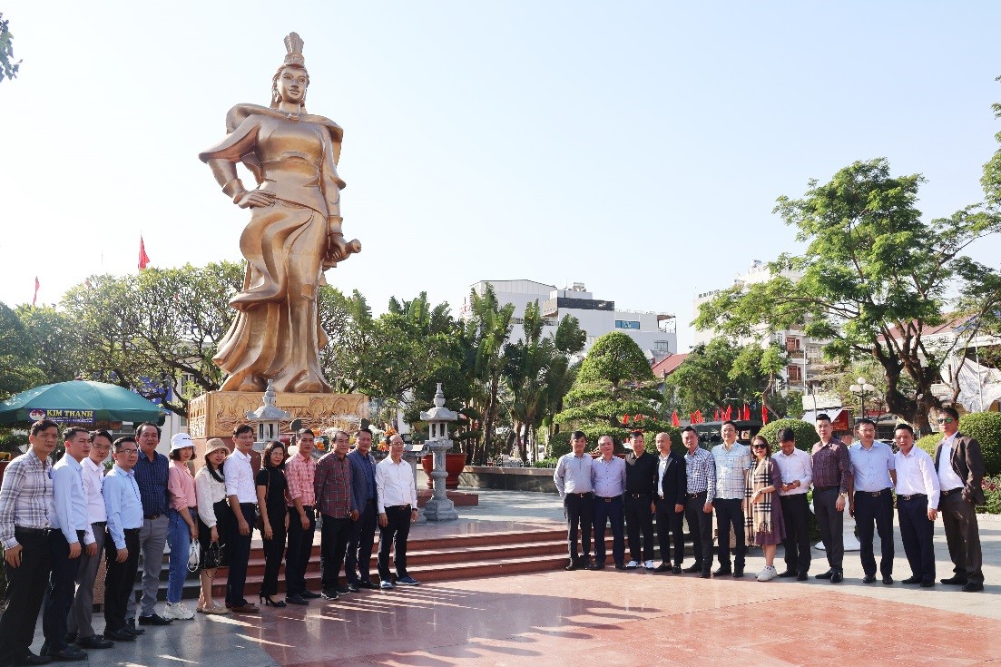 Đoàn tham quan tượng đài Nữ tướng Lê Chân.