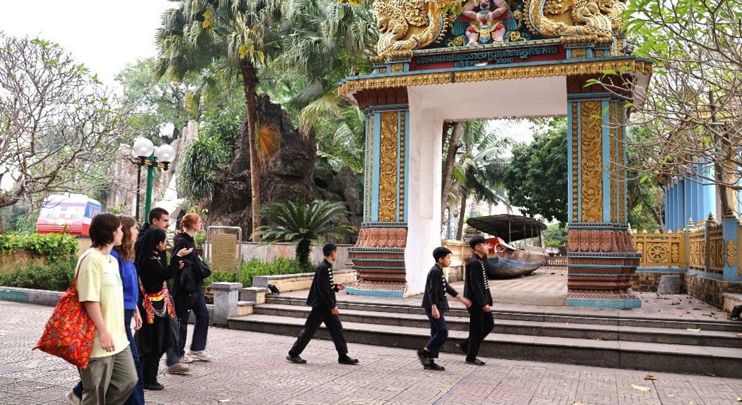 Du khách quốc tế tham quan không gian trưng bày ngoài trời