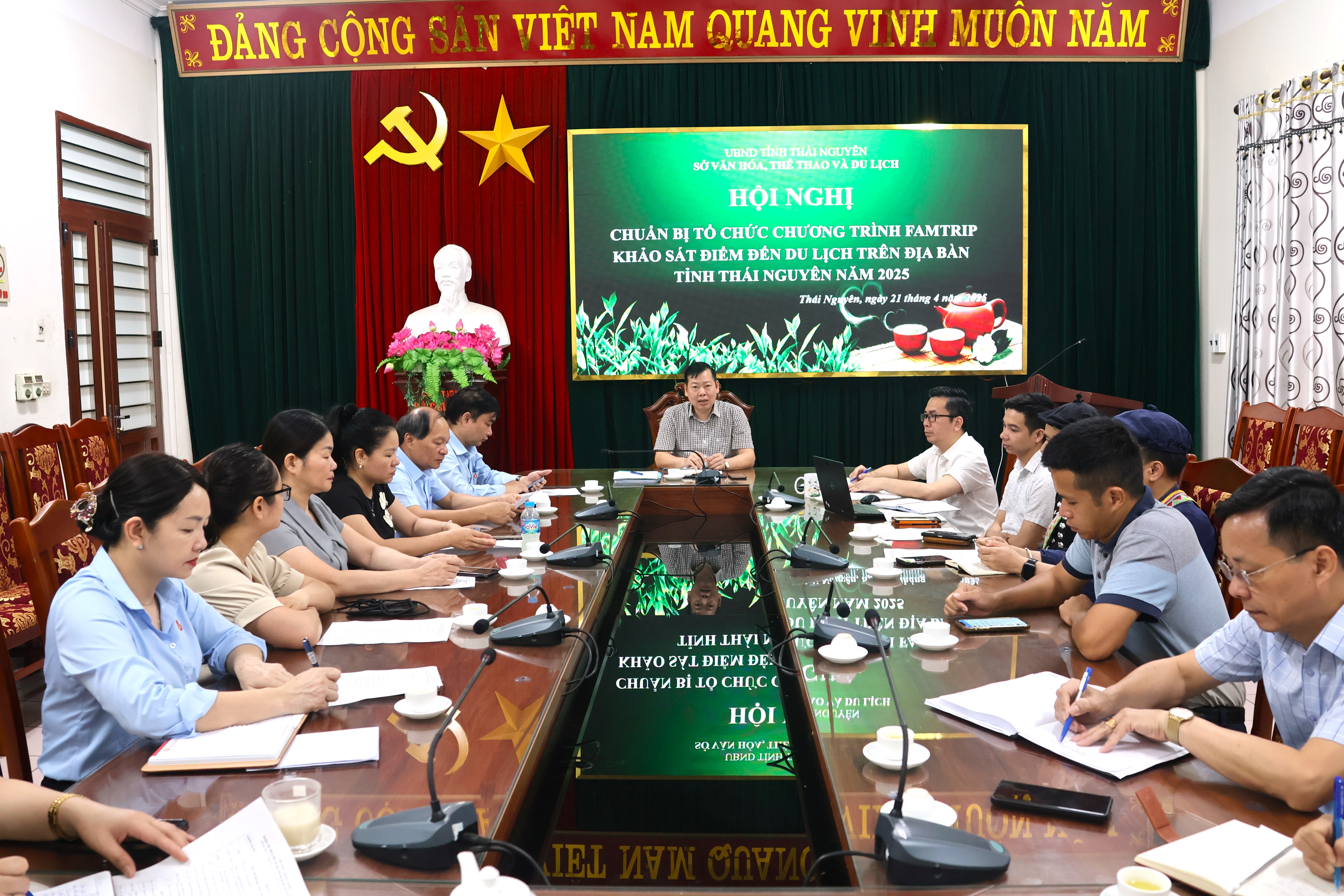 Nhằm chuẩn bị tốt các điều kiện để tổ chức chương trình Famtrip khảo sát điểm đến du lịch trên địa bàn tỉnh Thái Nguyên năm 2025, sáng ngày 21/4, Sở Văn hóa, Thể thao và Du lịch tỉnh Thái Nguyên đã tổ chức Hội nghị chuẩn bị tổ chức chương trình Famtrip khảo sát điển đến du lịch trên địa bàn tỉnh Thái Nguyên năm 2025.