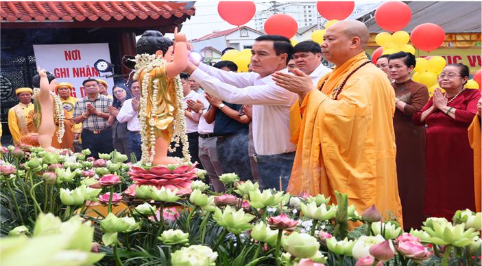 Tại Đại lễ, chư Tôn đức Tăng ni cùng đại biểu và Phật tử đã trang nghiêm cử hành các nghi lễ truyền thống như: Cung thỉnh chư Tôn đức giáo phẩm; dâng hoa kính mừng Phật đản; nghi lễ tắm Phật, với tâm nguyện cầu cho quốc thái dân an, nhà nhà ấm no, hạnh phúc.