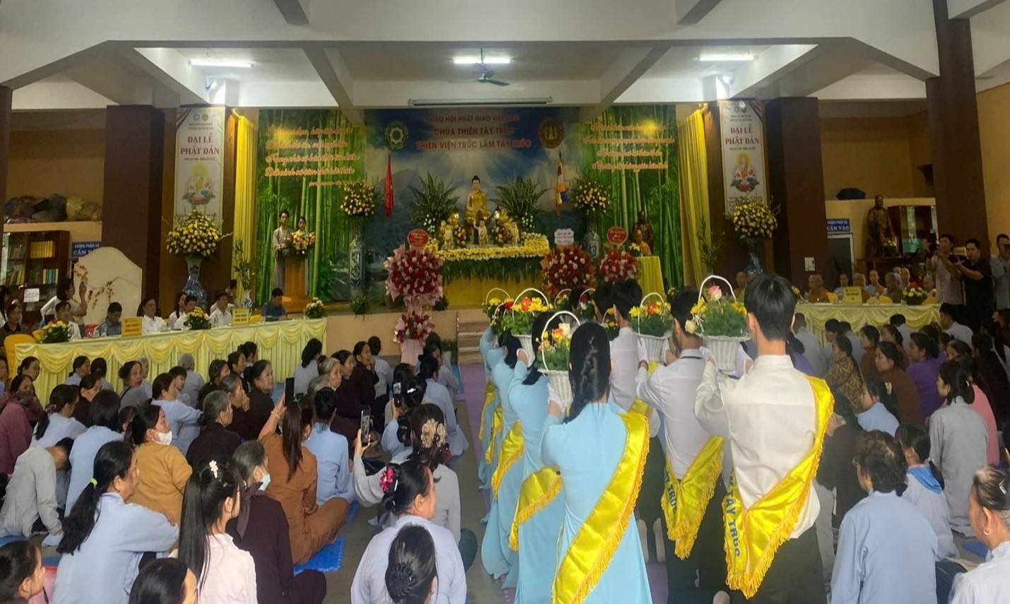 Lễ dâng hoa kính mừng Phật đản.