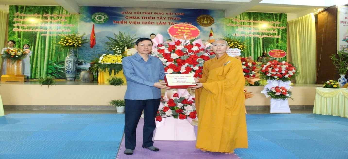 Tham dự buổi lễ có đồng chí Dương Văn Tiến, Uỷ viên Ban Thường vụ Tỉnh uỷ, Chủ tịch Uỷ ban Mặt trận Tổ quốc tỉnh Thái Nguyên; đồng chí Hoàng Phong, Phó Giám đốc Sở Dân tộc và Tôn giáo tỉnh Thái Nguyên; đồng chí Dương Văn Tuyên, Uỷ viên Ban Chấp hành Đảng bộ huyện, Phó Chủ tịch Uỷ ban nhân dân huyện Đại Từ; Thượng toạ Thích Kiến Nguyệt, Trụ trì Thiền viện Trúc Lâm Tây Trúc, cùng đông đảo tăng ni, phật tử trên địa bàn tỉnh.