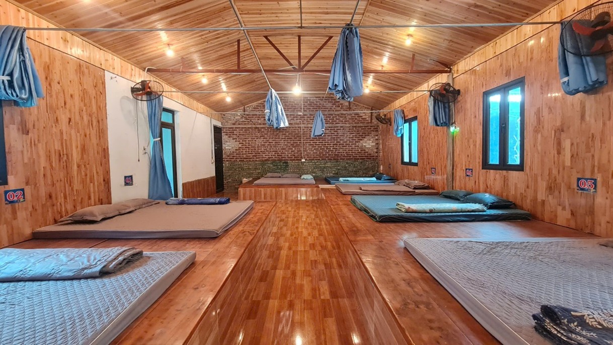 Khu lưu trú tại đây cũng khá ấn tượng. Một căn nhà nghỉ cộng đồng với sức chứa khoảng 20 khách. Thoạt nhìn bề ngoài tưởng chừng như đơn giản, tuy nhiên khi bước vào bên trong du khách sẽ thấy được sự rộng rãi, sạch sẽ, gọn gàng và rất ấm cúng. Với chi phí chỉ khoảng 150.000đ/khách là bạn đã có thể tận hưởng 01 đêm nghỉ dưỡng tại đây, kèm theo đó là rất nhiều dịch vụ trải nghiệm khác hấp dẫn du khách.
