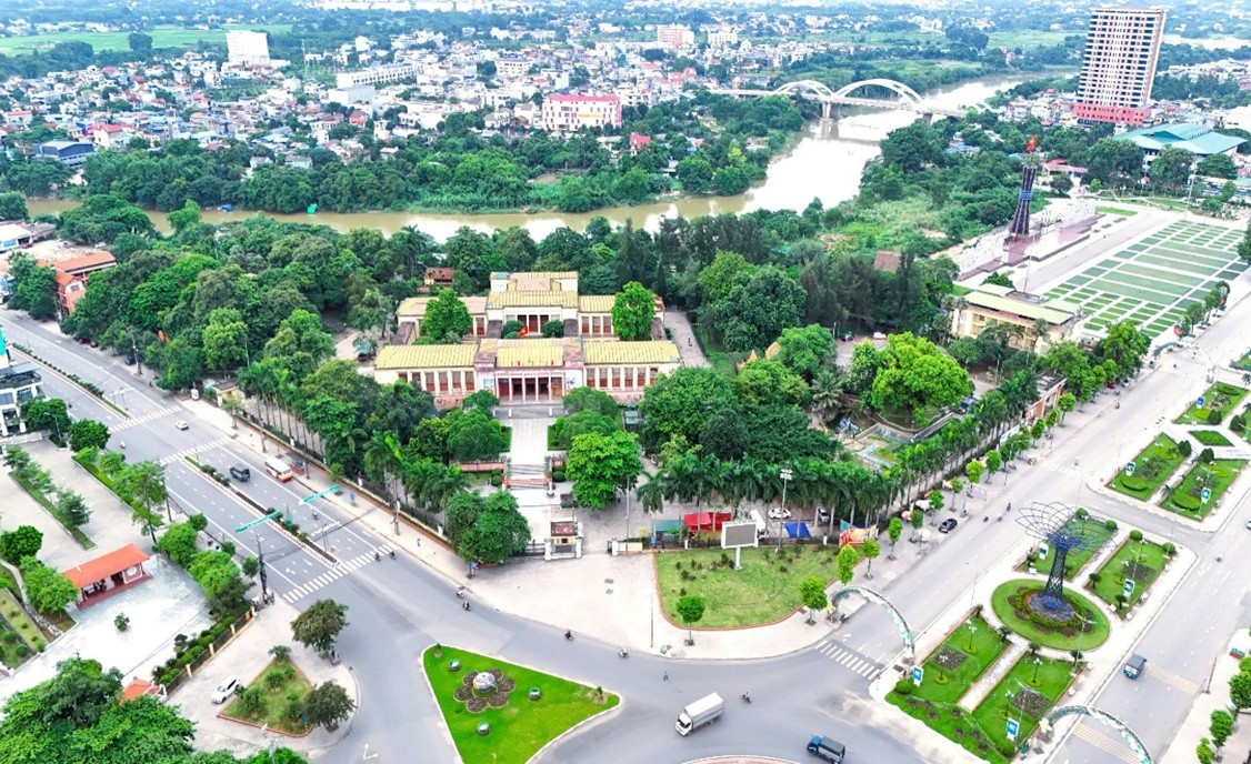 của thành phố Thái Nguyên, bên dòng sông Cầu thơ mộng và Quảng trường Võ Nguyên Giáp. Ảnh: Nam Đan