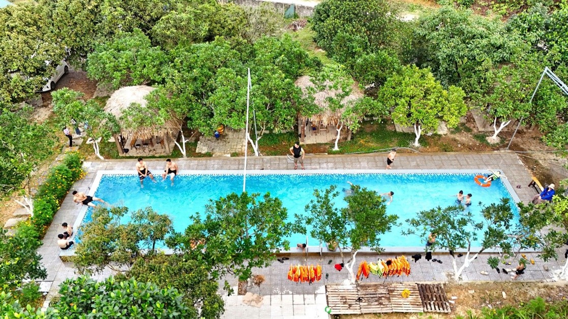 Bên cạnh đó, homestay còn có nhiều tiện ích nhỏ nhưng được chăm chút cẩn thận, tạo cảm giác thoải mái và gần gũi cho du khách. Vườn cây ăn trái với nhãn, vải, mít, hồng, vú sữa… được trồng từ nhiều thế hệ trước vẫn cho quả đều đặn theo mùa. Khu bể bơi nhỏ gọn, sạch sẽ, có cả bể dành riêng cho trẻ em. Vào buổi tối, khách có thể tham gia đốt lửa trại, nướng đồ ăn hoặc giao lưu văn nghệ với người dân địa phương. Tất cả đều diễn ra trong một không gian vừa vặn, không đông đúc, không ồn ào nhưng đủ để tạo ra những trải nghiệm đáng nhớ.