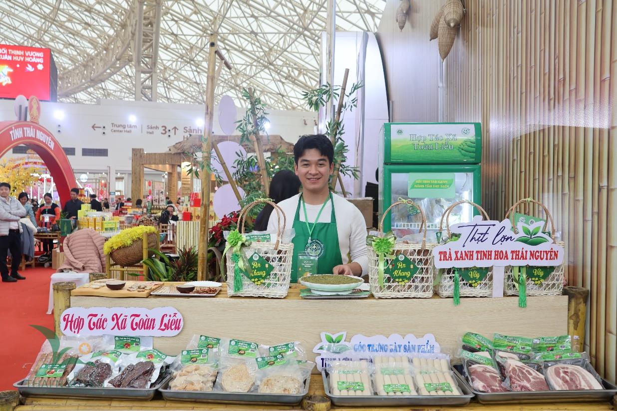 Tham gia chương trình Hội chợ Mùa Xuân lần thứ nhất năm 2026, tỉnh Thái Nguyên đã giao Sở Công thương chủ trì tổ chức không gian trưng bày các sản phẩm nông sản; sản phẩm tiêu biểu, đặc trưng, thế mạnh; sản phẩm OCOP; sản phẩm công nghiệp nông thôn tiêu biểu; sản phẩm tiêu dùng Tết của tỉnh. Đặc biệt tại Hội chợ năm nay, Thái Nguyên lần đầu tiên đưa sản phẩm “Thịt lợn trà xanh - Tinh hoa Thái Nguyên” giới thiệu đến các đại biểu và du khách tham quan. Bên cạnh đó, còn có một số doanh nghiệp, hợp tác xã kinh doanh trong lĩnh vực du lịch trên địa bàn tỉnh cũng chủ động tham gia trưng bày, quảng bá, giới thiệu về văn hóa, du lịch và ẩm thực đặc trưng của đơn vị mình tại các phân khu của Hội chợ.
