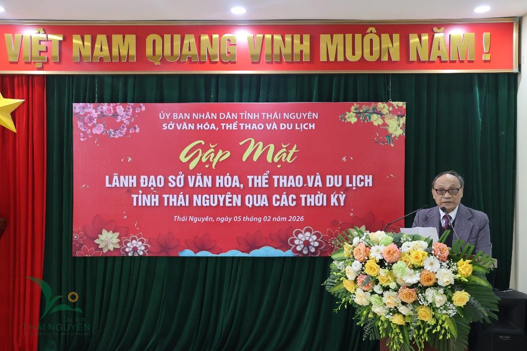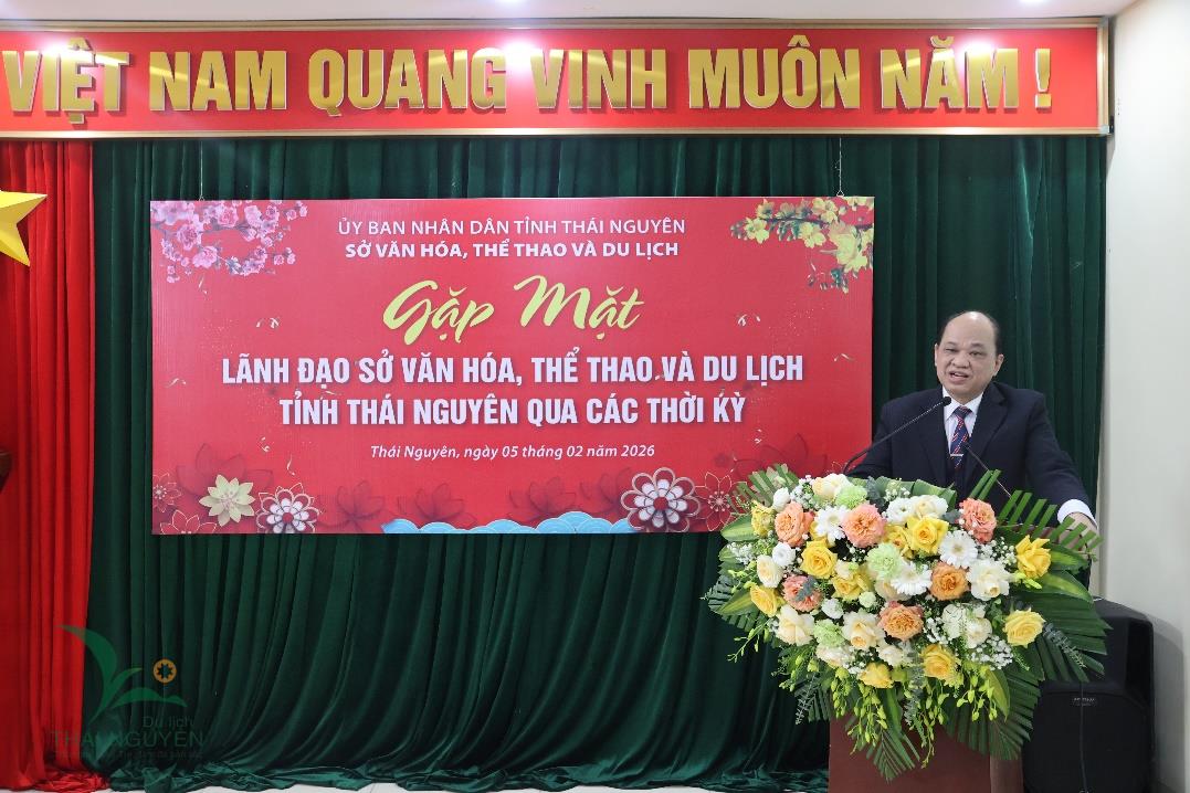 Chiều ngày 05/02/2026, Sở Văn hóa, Thể thao và Du lịch tỉnh Thái Nguyên đã long trọng tổ chức buổi gặp mặt các đồng chí nguyên lãnh đạo Sở Văn hoá, Thể thao và Du lịch tỉnh Thái Nguyên qua các thời kỳ. Đây là hoạt động ý nghĩa được tổ chức nhân dịp đón Tết Nguyên đán cổ truyền của dân tộc Xuân Bính Ngọ 2026, nhằm tri ân các thế hệ lãnh đạo ngành Văn hóa, Thể thao và Du lịch tỉnh, đồng thời là dịp gặp gỡ, thăm hỏi, chia sẻ kinh nghiệm giữa các thế hệ lãnh đạo Sở.