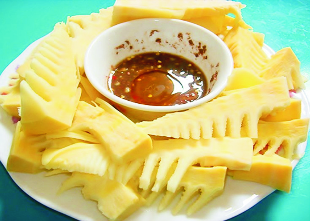 Măng chấm mắm tôm chanh - món ăn hấp dẫn của khách. Ảnh: Quang Minh