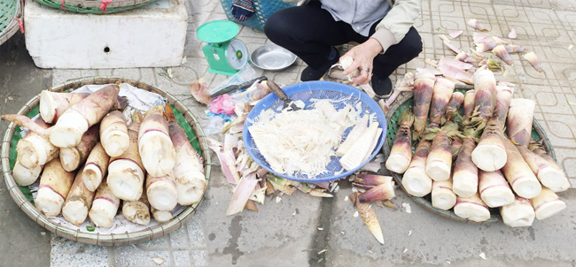 Măng được bày bán bên đường trên Quốc lộ 1B đoạn qua địa phận Thái Nguyên. Ảnh: Nam Đan