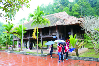 Du khách tham quan lán Khuôn Tát. Ảnh: Đoàn Chiên