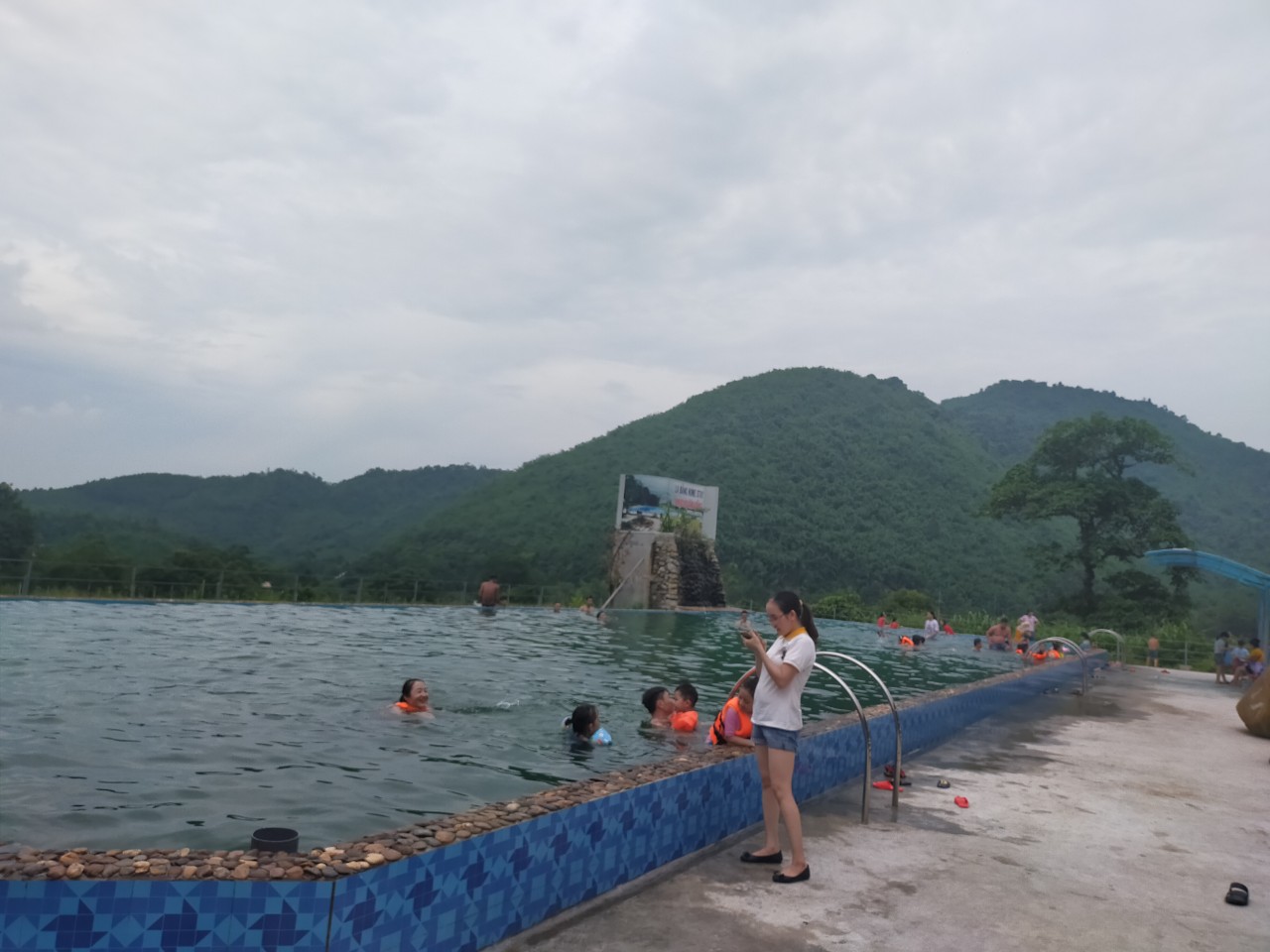 Sau khi dùng bữa trưa và nghỉ ngơi tại nhà sàn, chúng tôi ra bể bơi vô cực. Với thiết kế độc đáo của bể đã tạo cho tôi cảm giác như đang đắm mình trong một hồ nước không có điểm kết thúc, thỏa sức bơi lội nhưng cũng không quên lưu lại những hình ảnh đẹp làm kỷ niệm cho mình trong chuyến đi.
